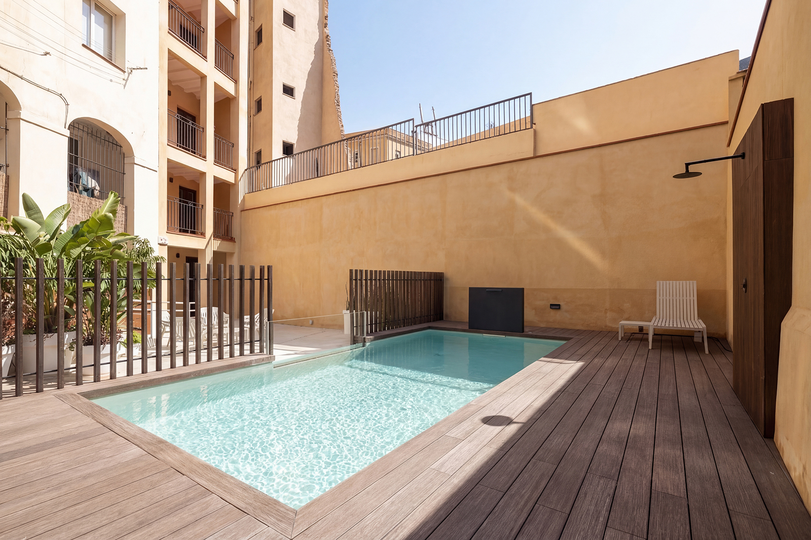 Tallers Residences presents a unique residential development located in one of Barcelona’s most historic neighbourhoods. The project comprises 12 unique three-bedroom homes, with interiors ranging from 108 to 120 m². The development is complemented by a spacious communal rooftop terrace with solarium and swimming pool, a peaceful and private environment in the very centre of the city , offering an exceptional perspective over Barcelona.